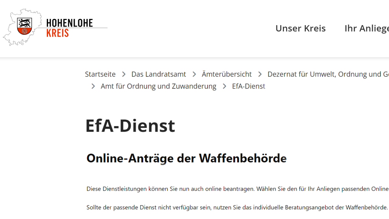 Hohenlohekreis digitalisiert Antragsverfahren für Waffen- und Sprengstoffangelegenheiten
