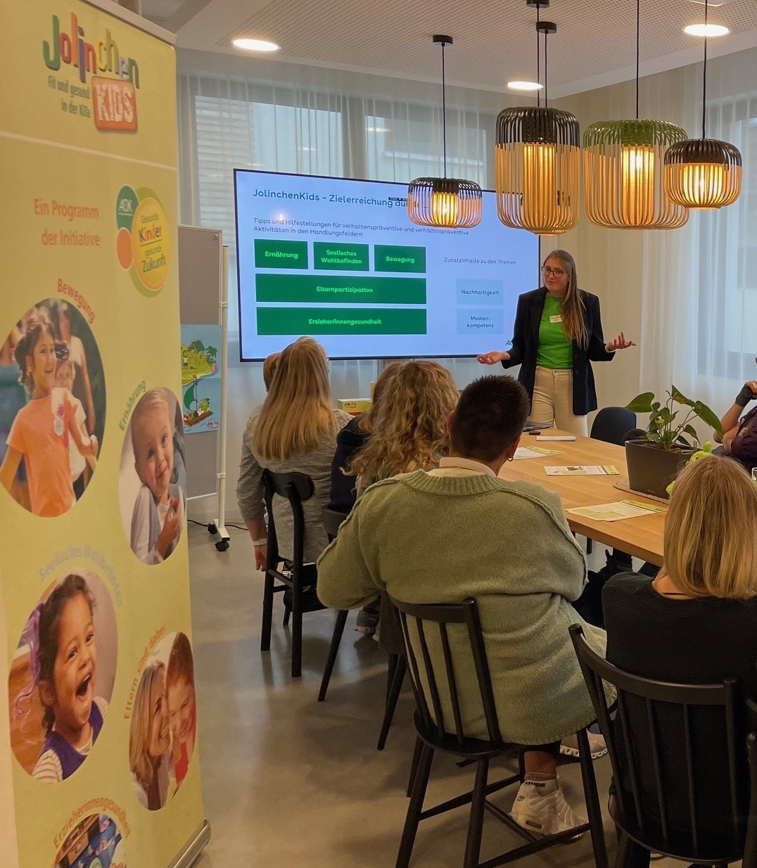 Michael Stehle, Leiter des Kreismedienzentrums Hohenlohekreis, stellte die umfangreichen Angebote seines Hauses vor. Unter dem Titel „JolinchenKids – Medienkompetenz als Entdeckungsreise“ zeigte Sophia Warnecke von der AOK, wie sich Medienaneignung, Bewegung und Gesundheit durch kindgerechte Ansätze miteinander verbinden lassen. Zum Abschluss wurden weiterführende Angebote präsentiert, die den Transfer in Teamfortbildungen und Kita-Konzepte unterstützen sollen.