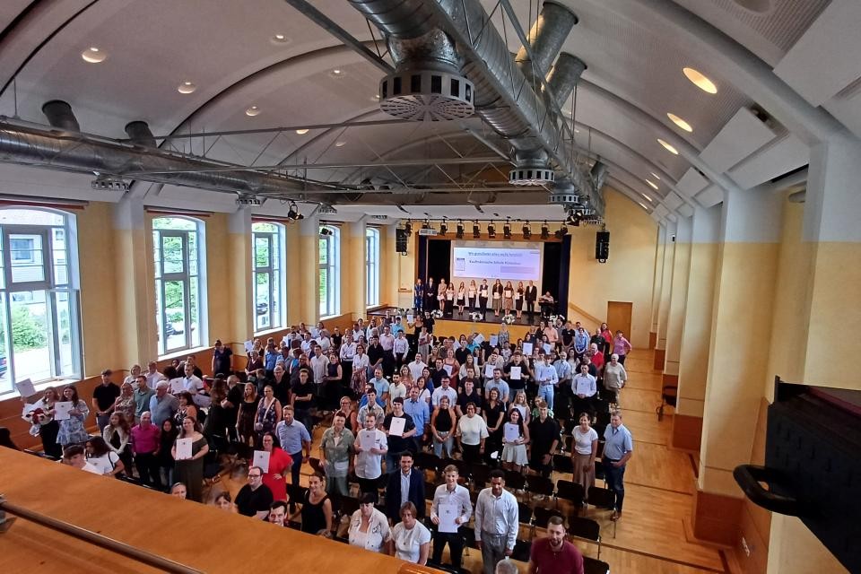 144 junge Menschen haben erfolgreich ihre Berufsausbildung an der Kaufmännischen Schule Künzelsau abgeschlossen – und wurden in der voll besetzten Stadthalle feierlich verabschiedet.